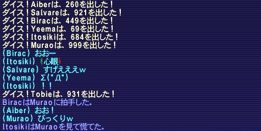 BF前で、迷のアニマの手番を決めるダイス勝負のとき、「999」を出したムラさん。