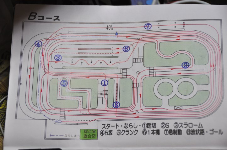 最初、30km/hからの急制動から始めて、次35km/hから、3回目に40km/hからの急制動。11m以内に停止できたので、それ以降は時間までAコースを慣熟走行。
