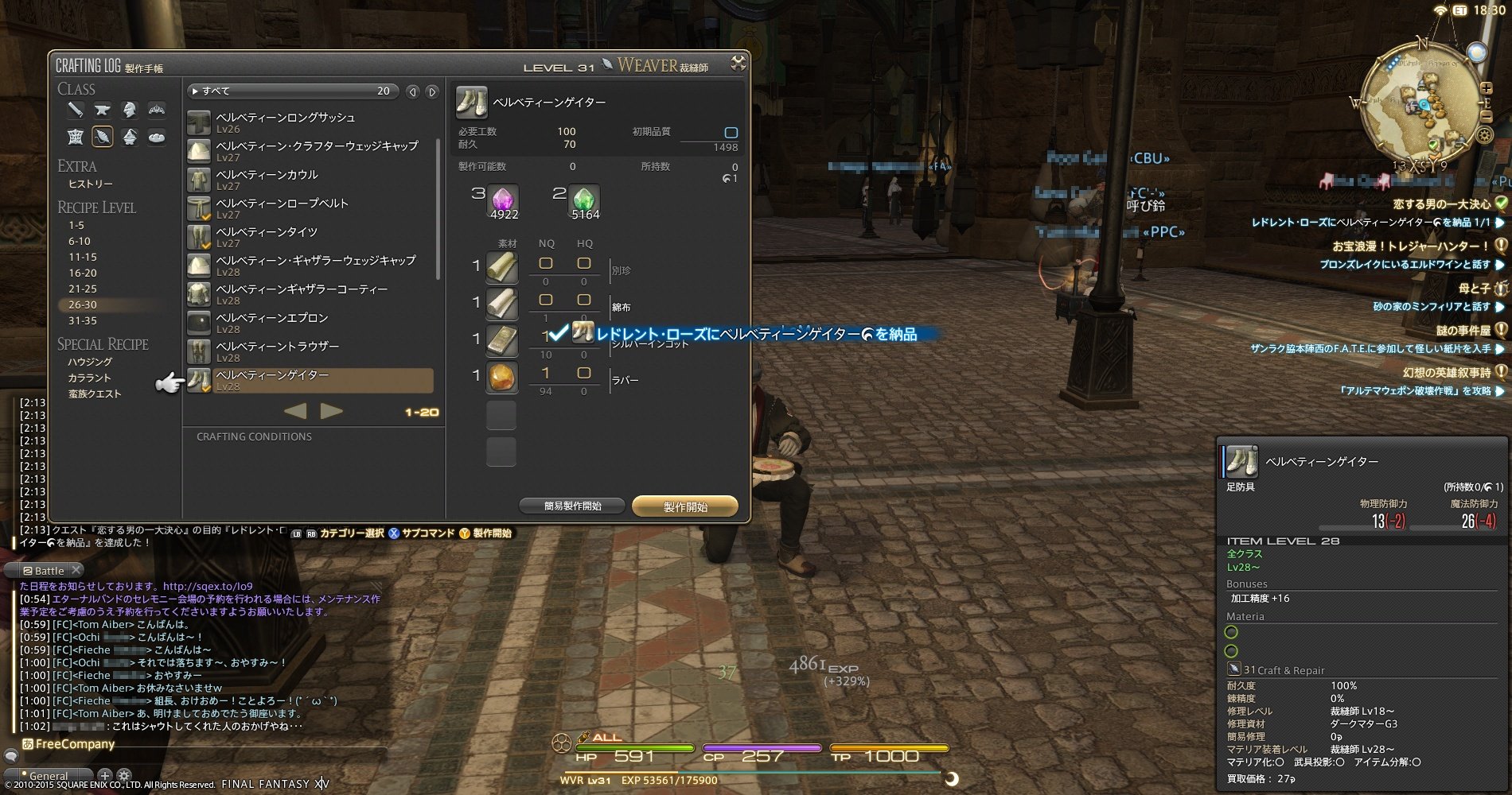 Lv.31の裁縫師にLv.28のレシピでHQを作れとか、難しいことを言ってくれるものです。