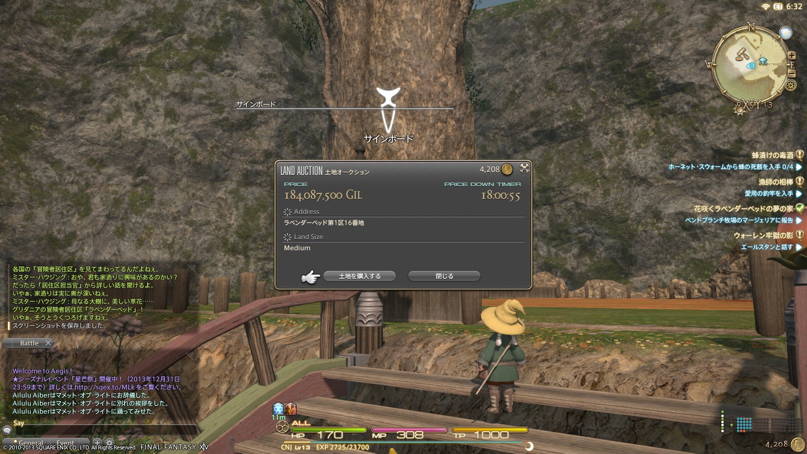 イン直後、目の前にクエストがあったので、受けてみたらハウジング関連だったのです。