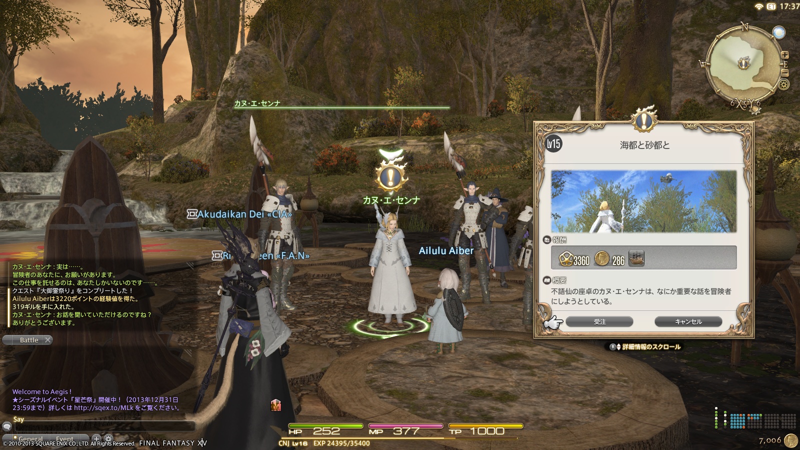 まァ、正確には受けてないサブクエストが黒衣森に残ってるのですが、Lv.20~30くらいのもの。