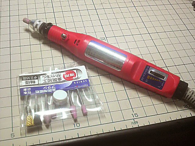 このルーターの良いところは、口がチャック式なのでピンバイスも取り付けられるところです。穴あけとかも、随分楽になるはずw