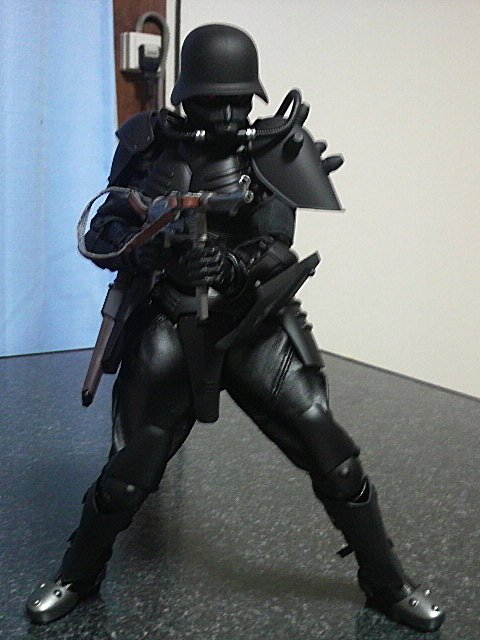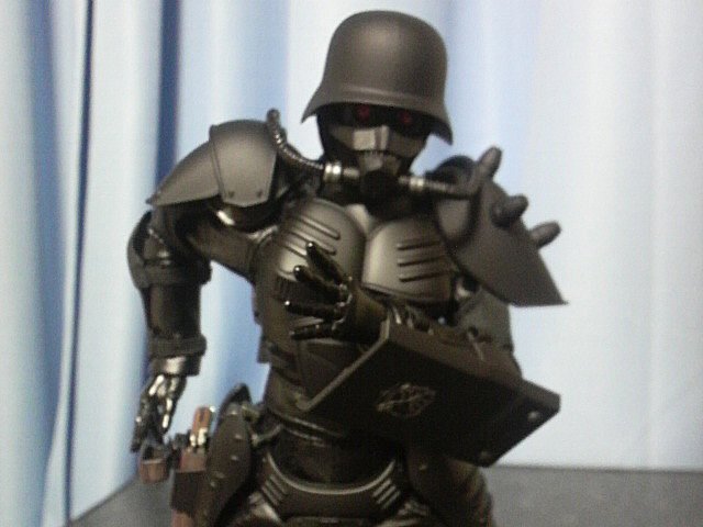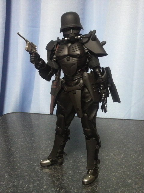 ヘルメットを着けて、腰のホルダーにマウザーを入れたら完成です。