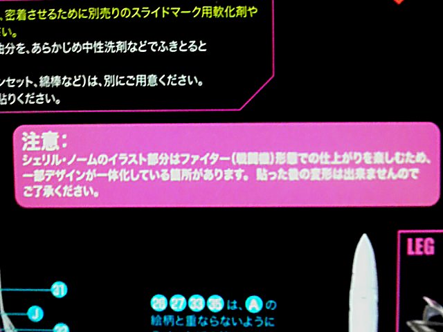 シェリル特製デカルチャーデカールで作成中のシェリル機ですが、