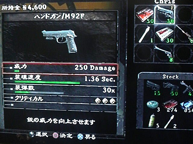 とりあえず、初期装備のハンドガンは、この段階ではココまでしか強化できませんでした。