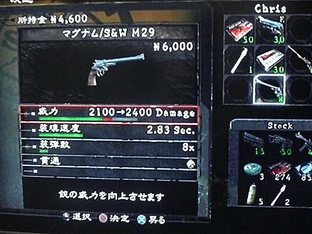 ここまで強化しておくと、トリガーハッピーなシェバでも少ない弾数で敵を倒せるので、