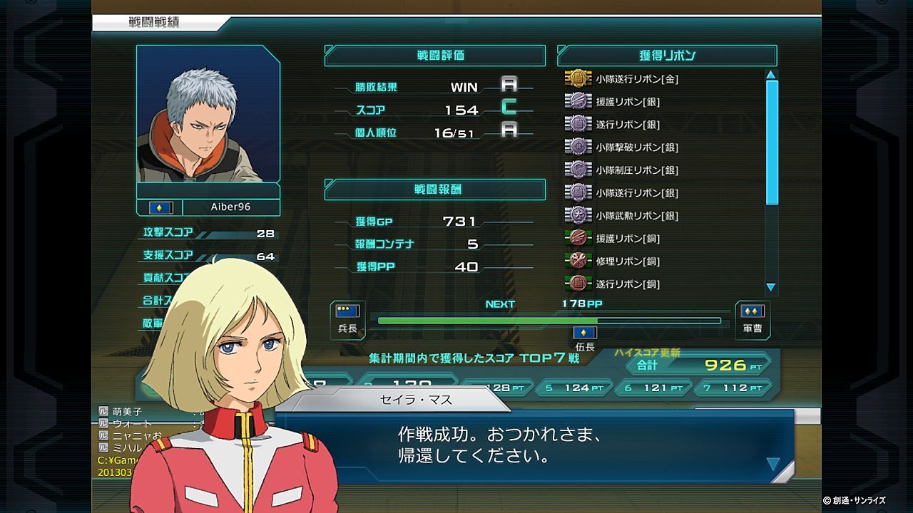 あと、所属した部隊長がセイラさんなので、戦闘後、毎回声をかけてくれますw