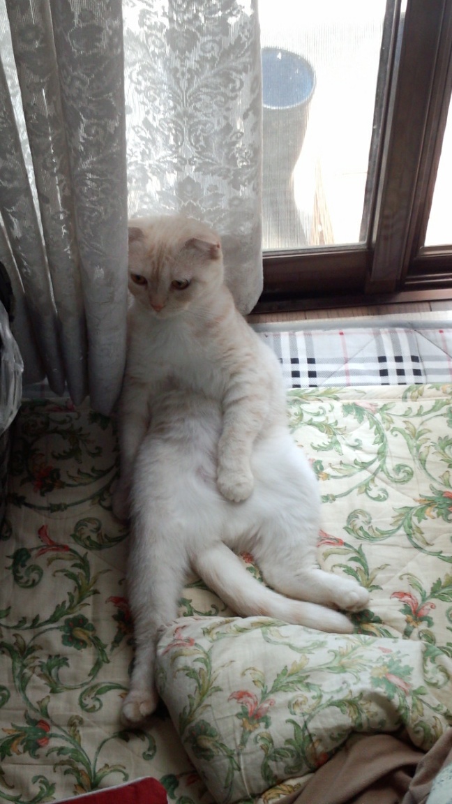 何故か座り方が、ちっとも猫らしくないんですがwww