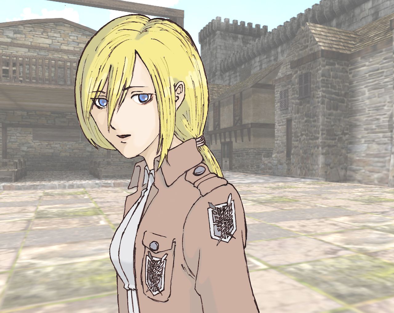 背景が真っ白なのもなんなので、MMDからリベルニア公国を画像出力してバックに配してみる。