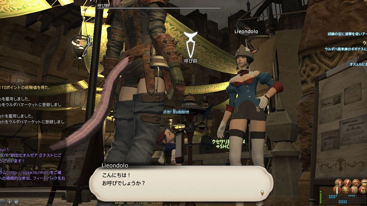 そんな風にクエストをしながらウルダハをウロウロしてたら、リテイナーを呼び出すことができました。