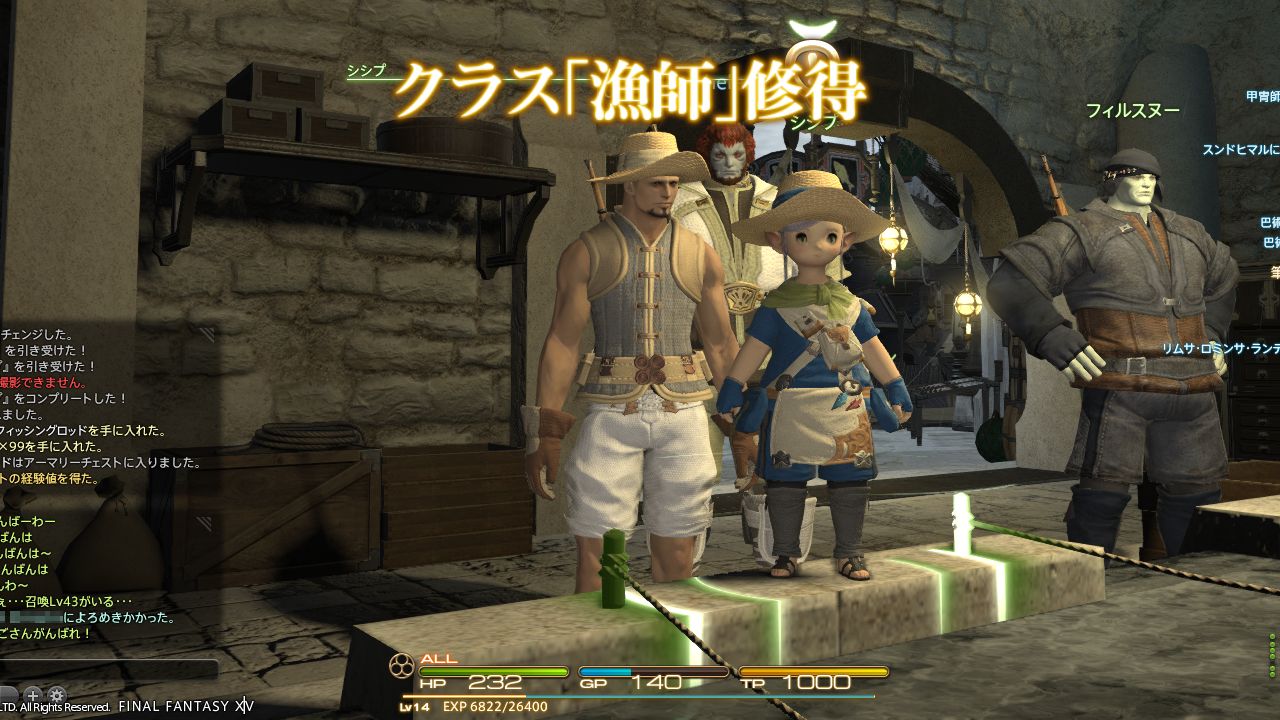 リムサ・ロミンサでのメインクエストを済ませたら、ギアセットを増やすためにクラス修得クエをやっていきます。