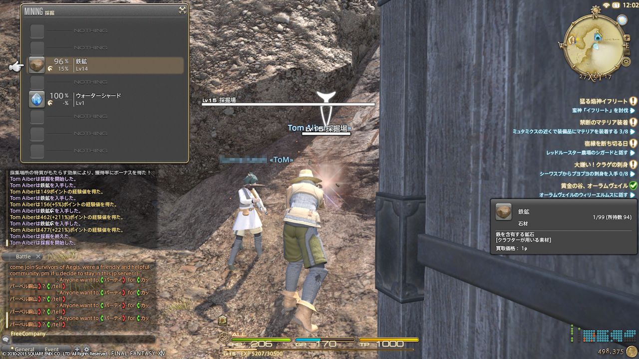 Lv.15の園芸師なら、1つ上げれば済むのだがザナラーンだと採掘師のほうが良いよな。