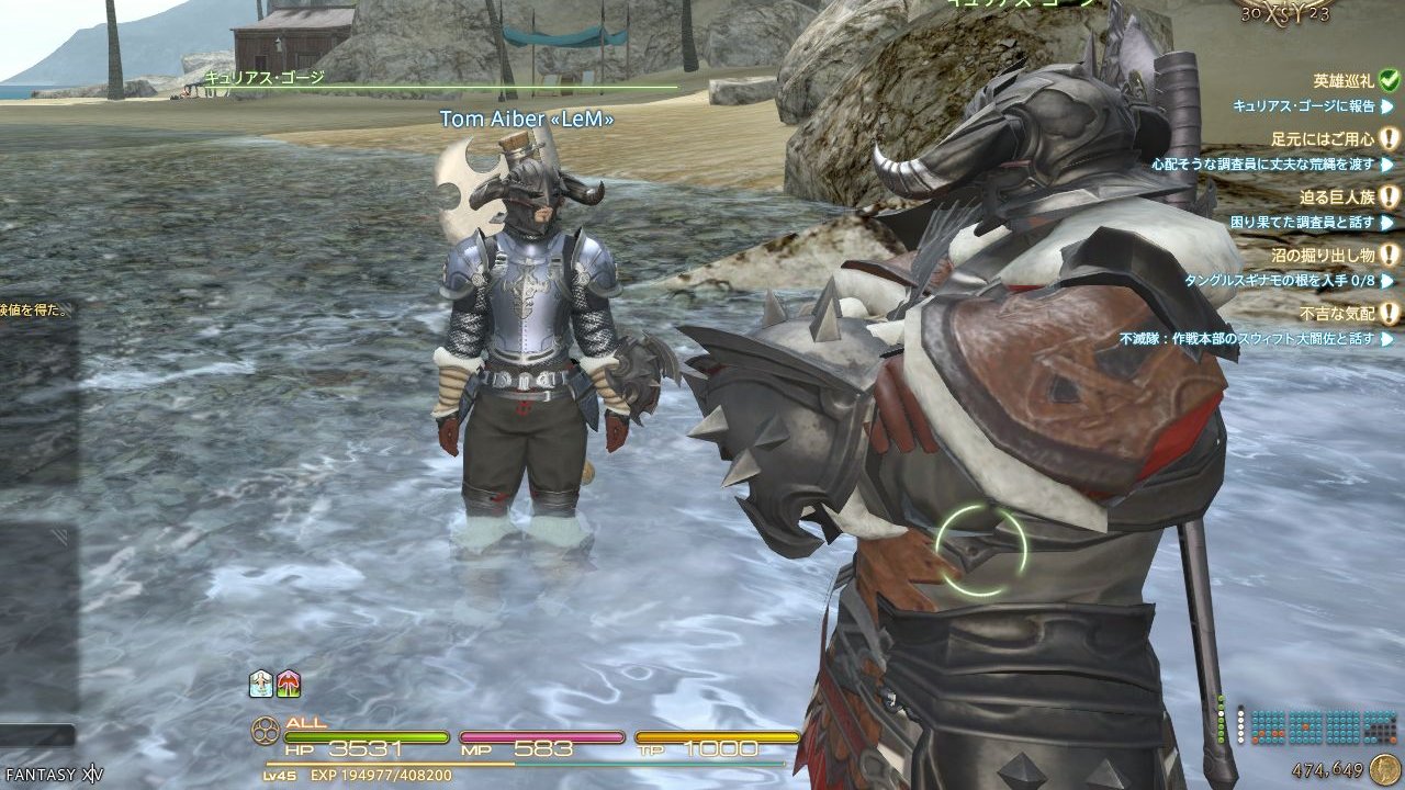 頭装備を取りに東ラノシアへ行き、胴装備を入手するためクルザスまで行ったのに、