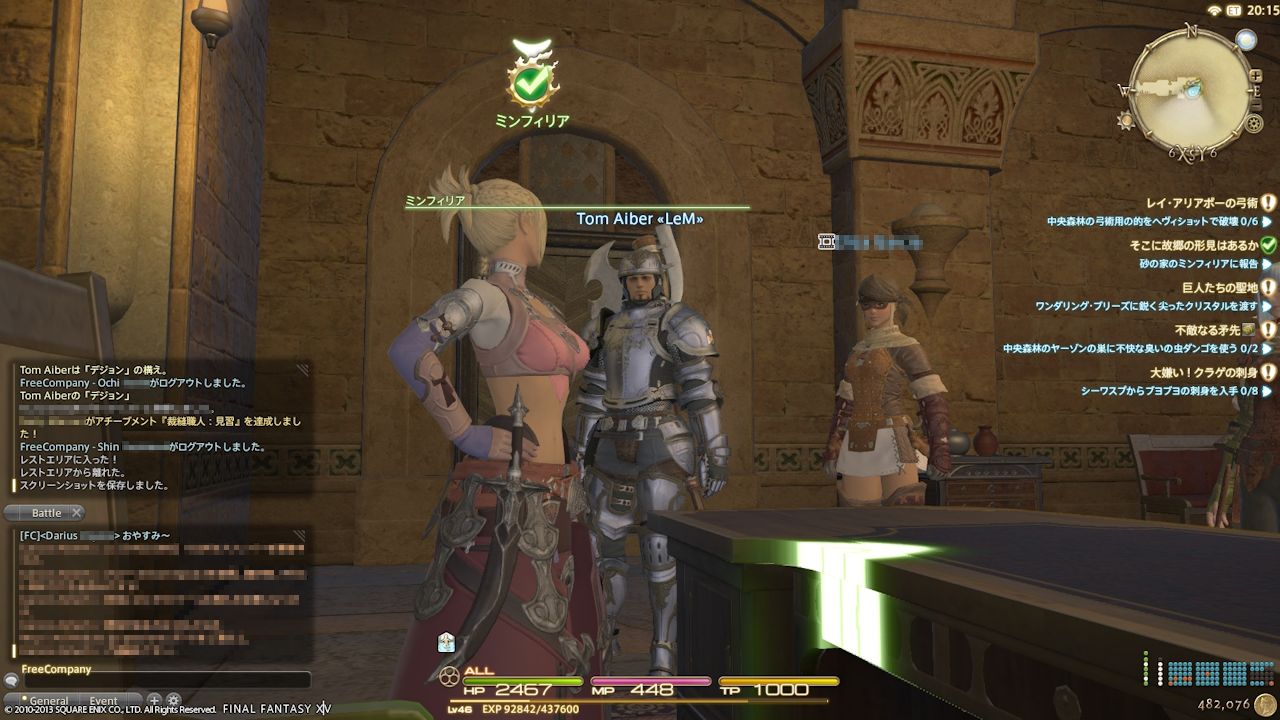 ↑は、槍術士と弓術士のクラスクエストで、グリダニアへ行ったさい、