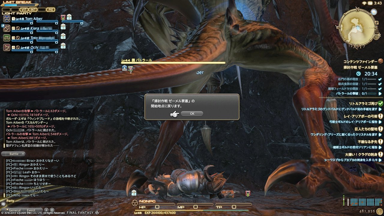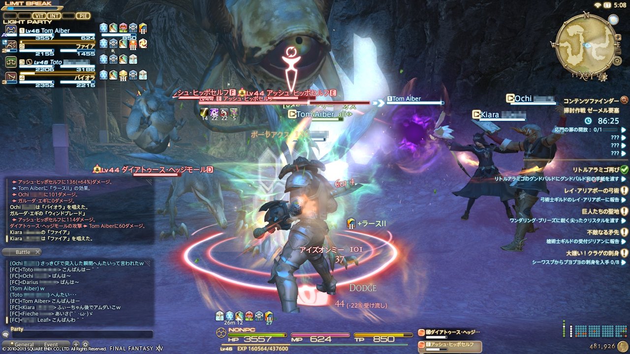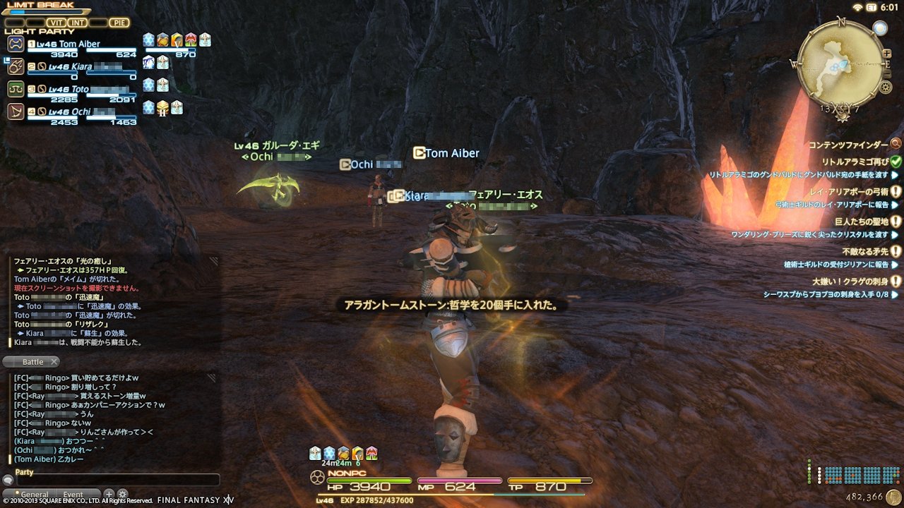 『FFXIV』は、『XI』と違い別のエリアに居てもPTに誘えるし、