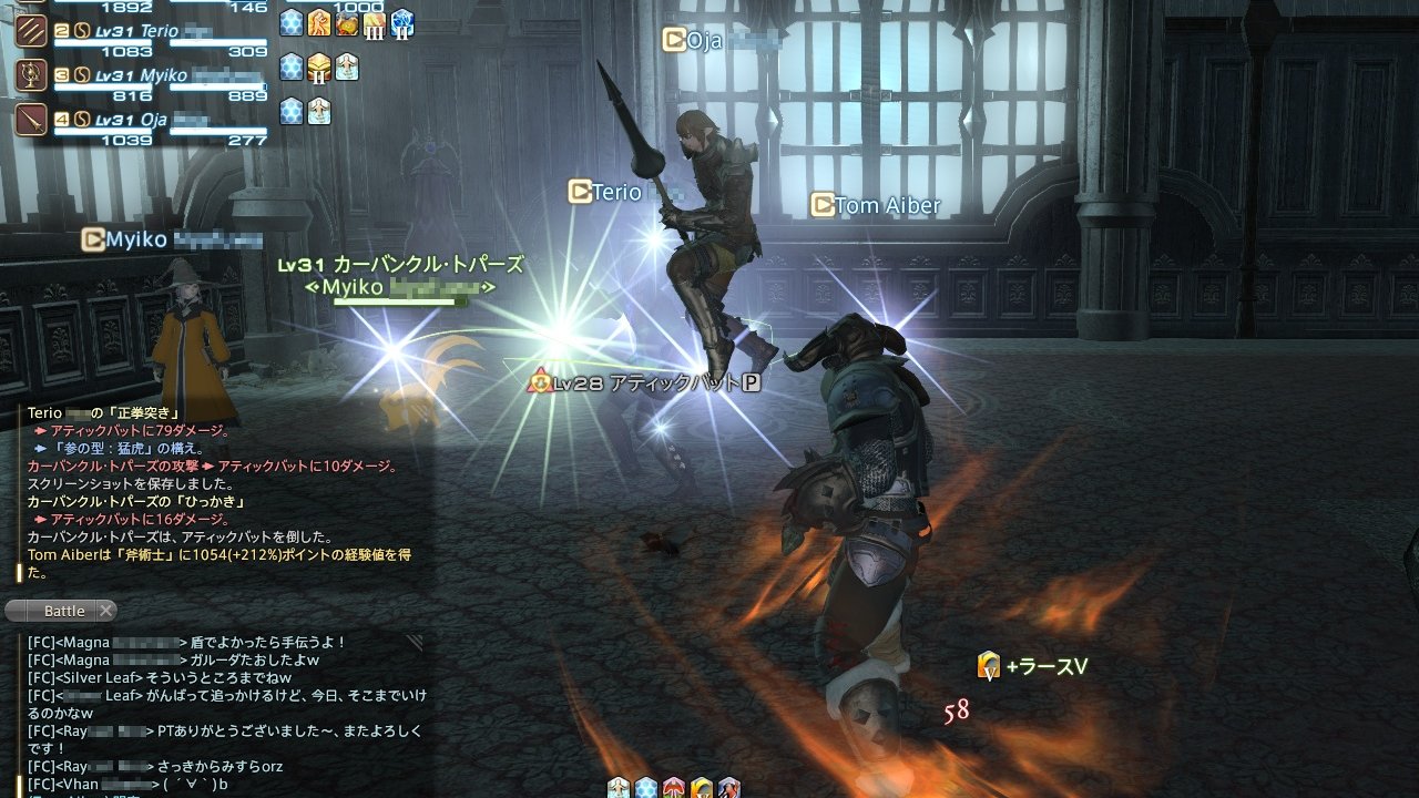 そのオジャさんを起こそうと、ミコさんがリザレクを唱えてる間に、メイドのファイガに焼かれた私