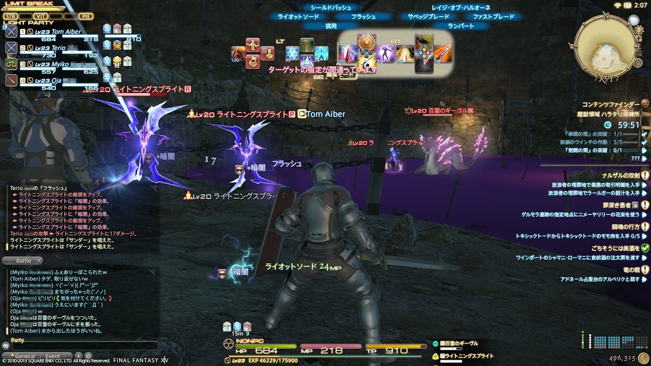 この戦闘では、テリオさんが主盾を張ってたので、雑魚処理にまわった私。