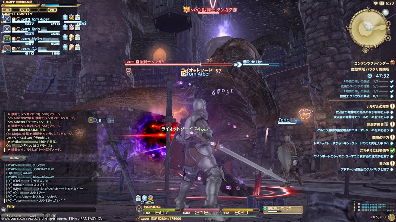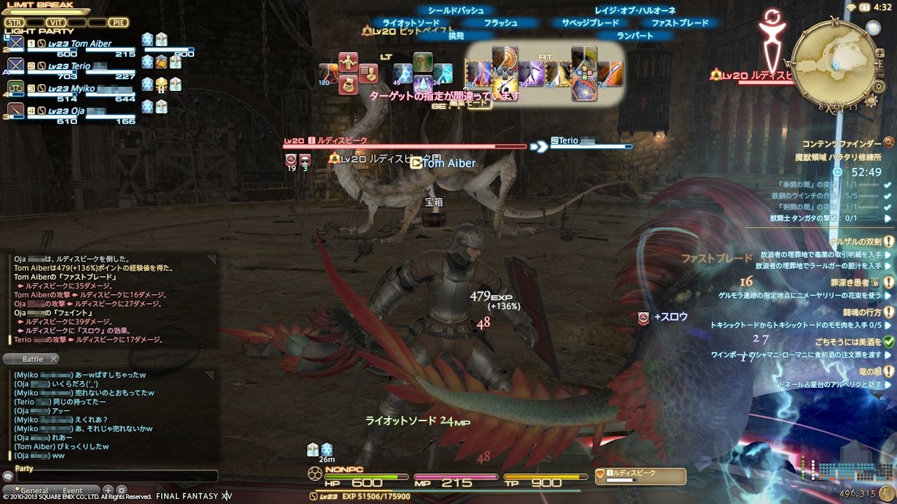 PT構成は、剣(テリオ)、剣(私)、槍(オジャ)、学(ミコ)のダブルタンク構成。