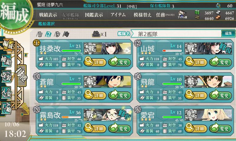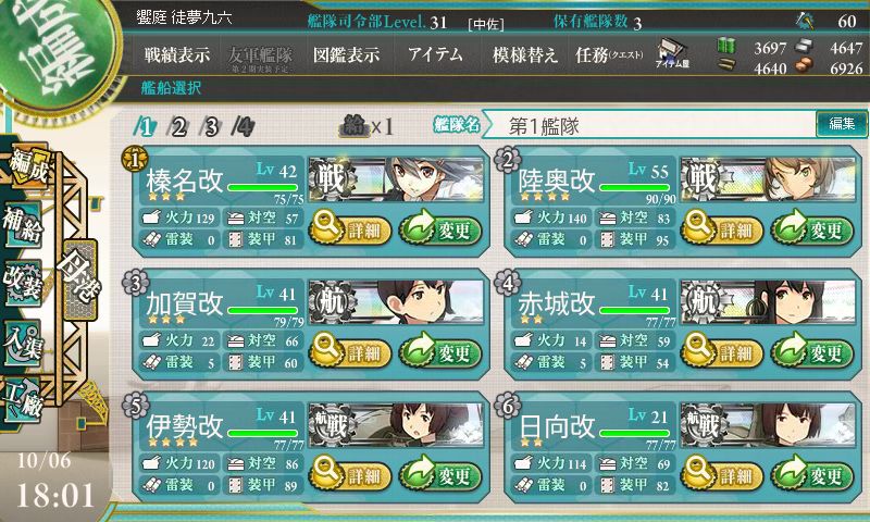 第1艦隊の全艦がLv.30を超えたあたりで、戦力としては十分だと思っていたのですが、