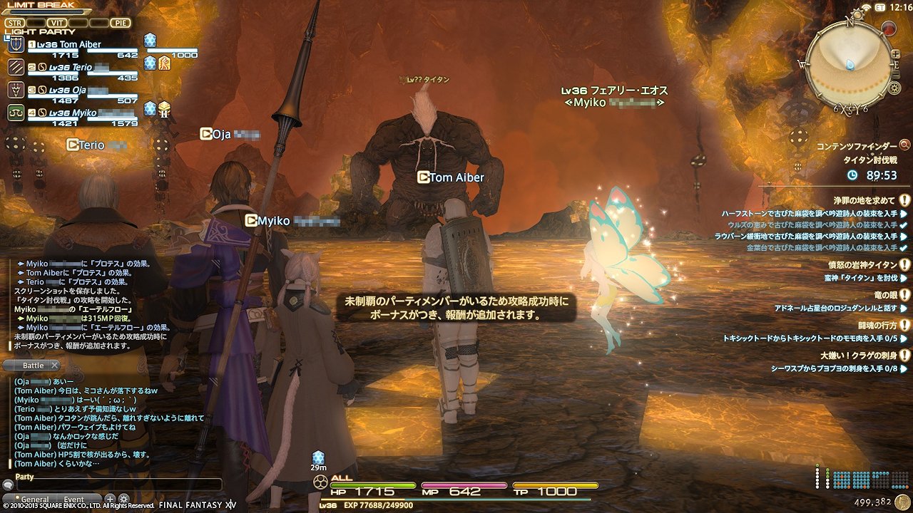 前記事の直後、いつもの固定メンバーでメインクエスト「タイタン戦」へ!