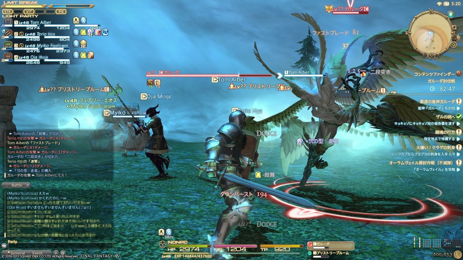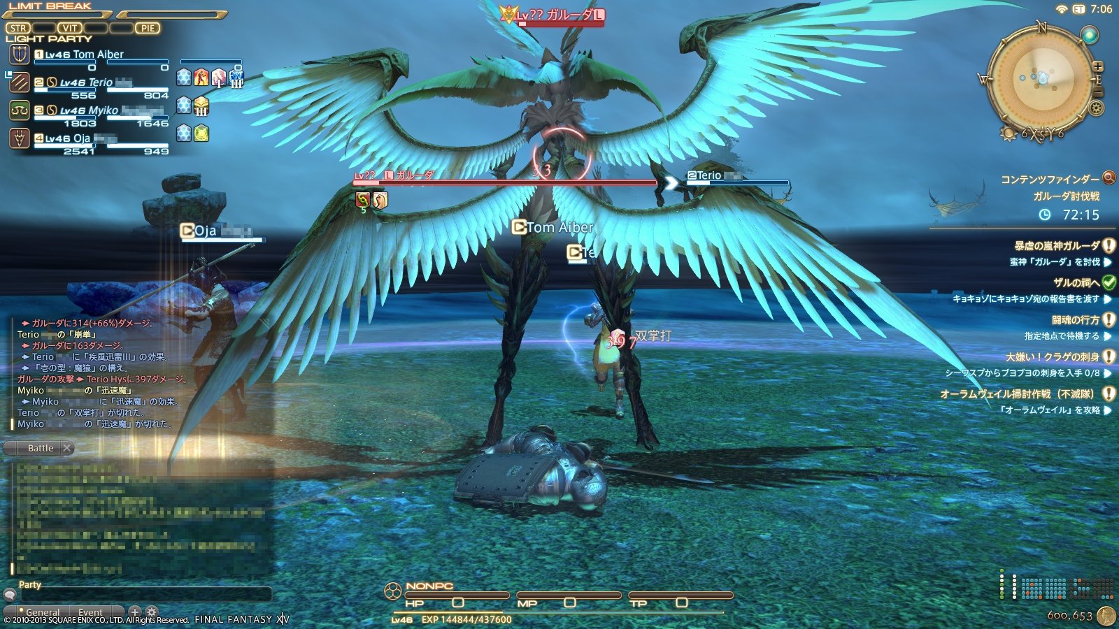 かーなり久し振りなメインクエスト、「ガルーダ討伐戦」に行ってきました。