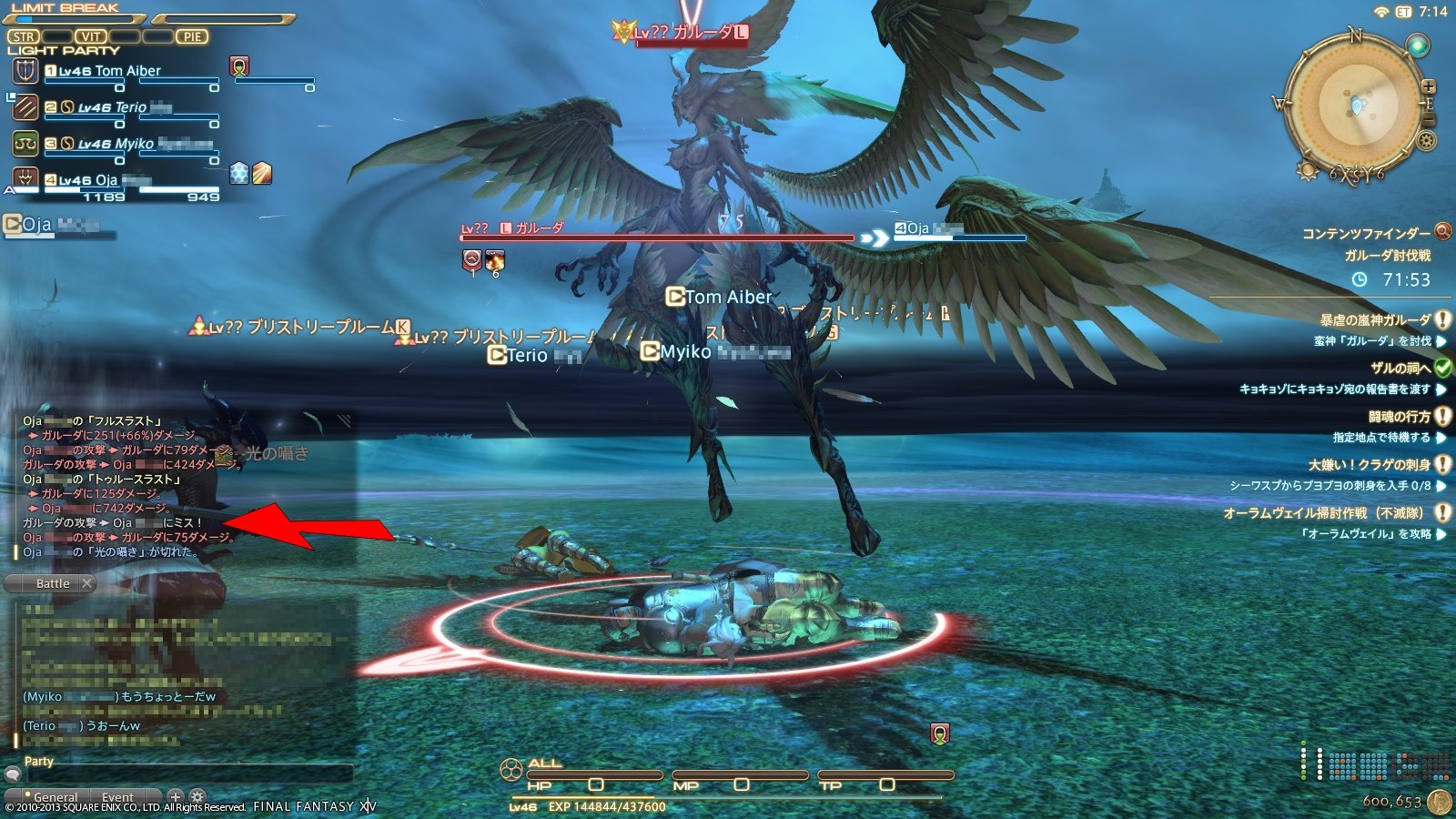 一瞬だけガルーダのタゲが向いたのも大きかったような気もします。