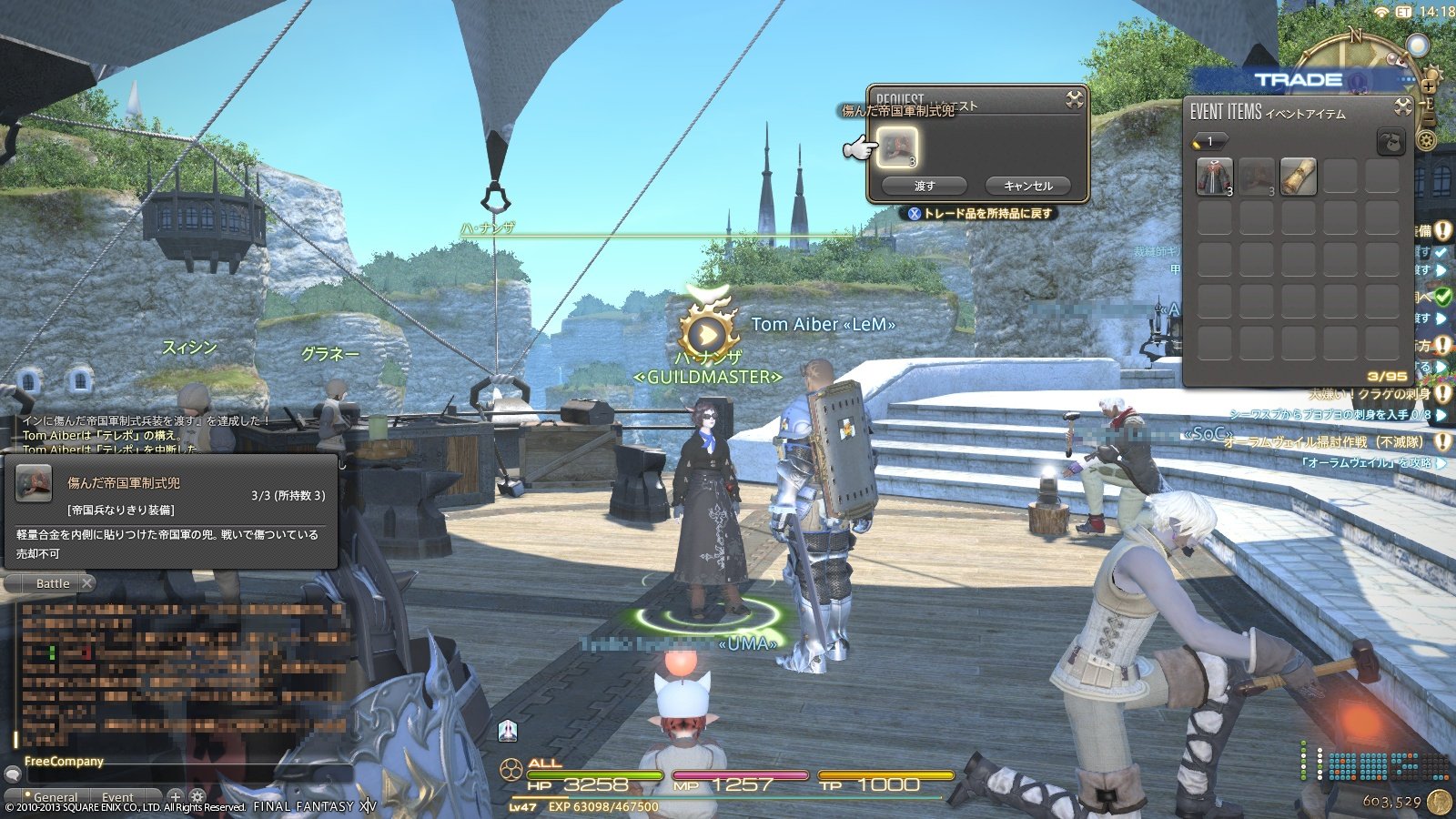 リムサ・ロミンサのエーテライトはお気に入り登録してあるので、格安でテレポして甲冑師ギルドへ。
