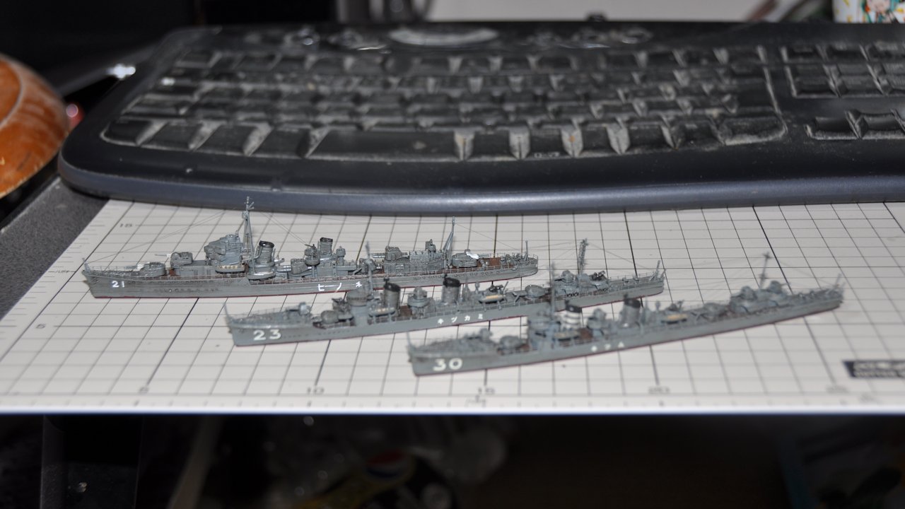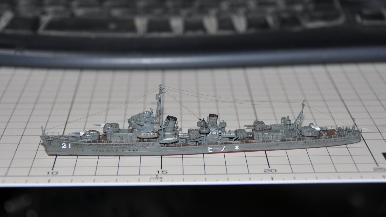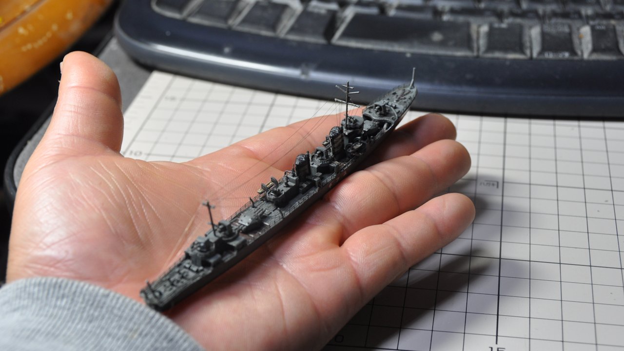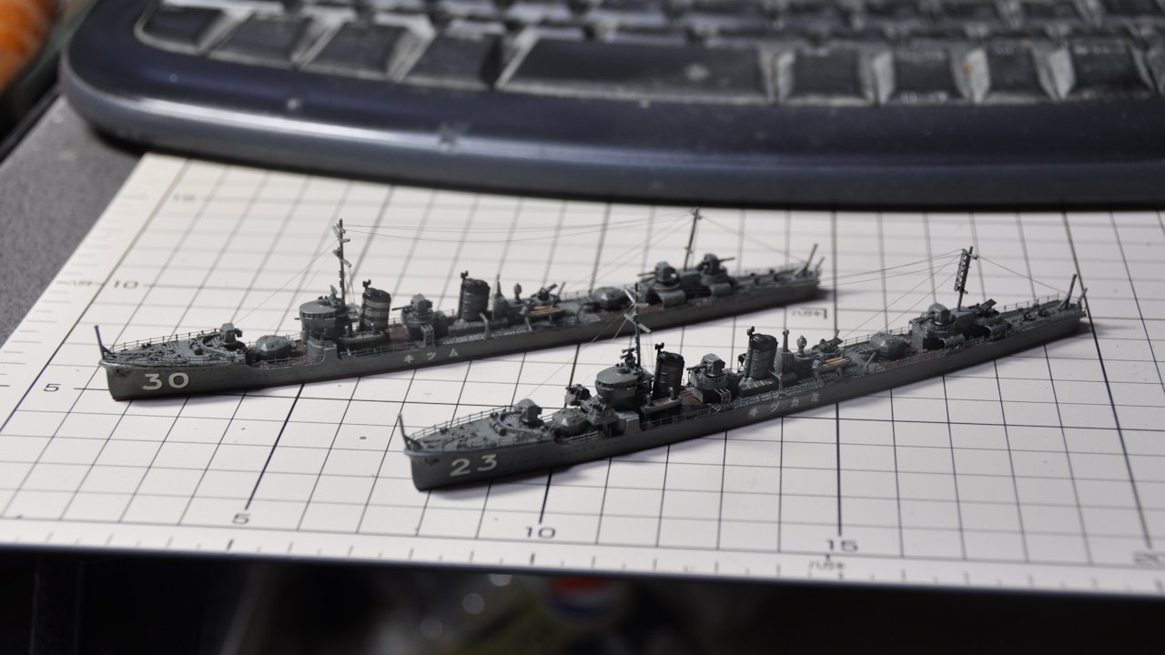 前回、下塗りまで終わってた駆逐艦三日月も、完成いたしました。