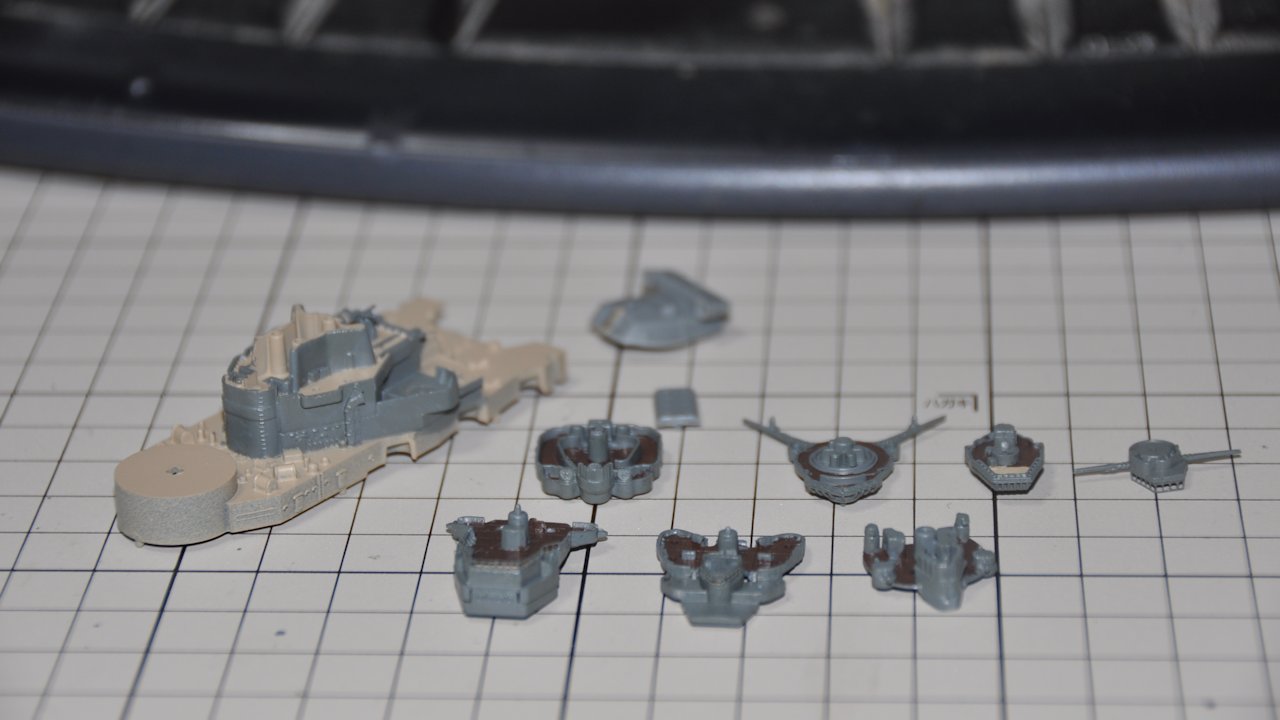 2m測距儀、25mm機銃、探照灯については、モールドが甘いし、部品にヒケもあったので、