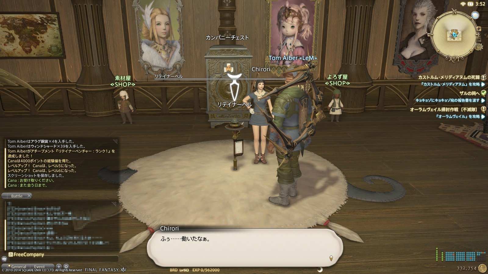 ウルダハで受けたクエストをクリアしたら、リテイナーベンチャーが開放されたので、