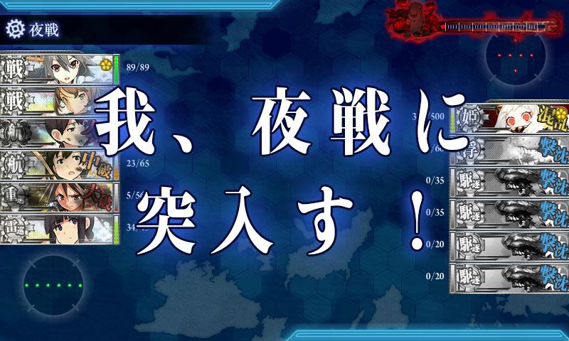 利根が大破しちゃってますが、残り3人で何とかしてくれる筈!…と夜戦に突入。
