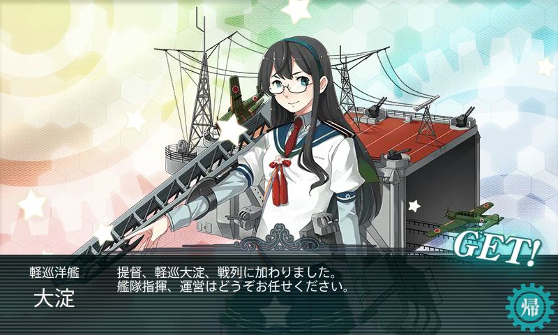 E-2攻略報酬は、軽巡大淀。