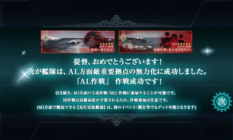さてさて、AL作戦が成功したので、いよいよ本命のMI作戦なのですが、