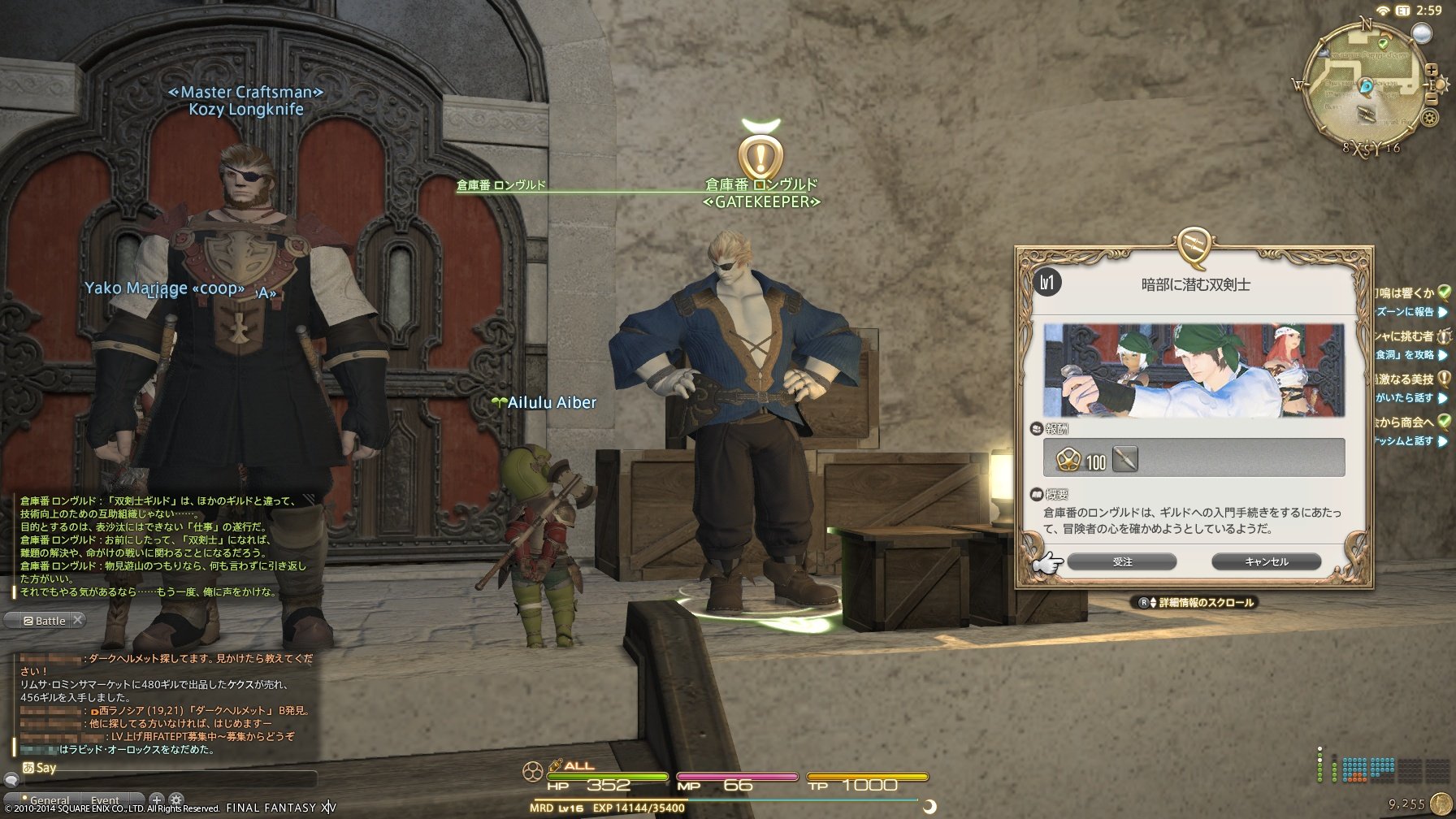 リムサ・ロミンサで、ふとクエストを受けたら、双剣士修得クエに繋がっちゃいましたw