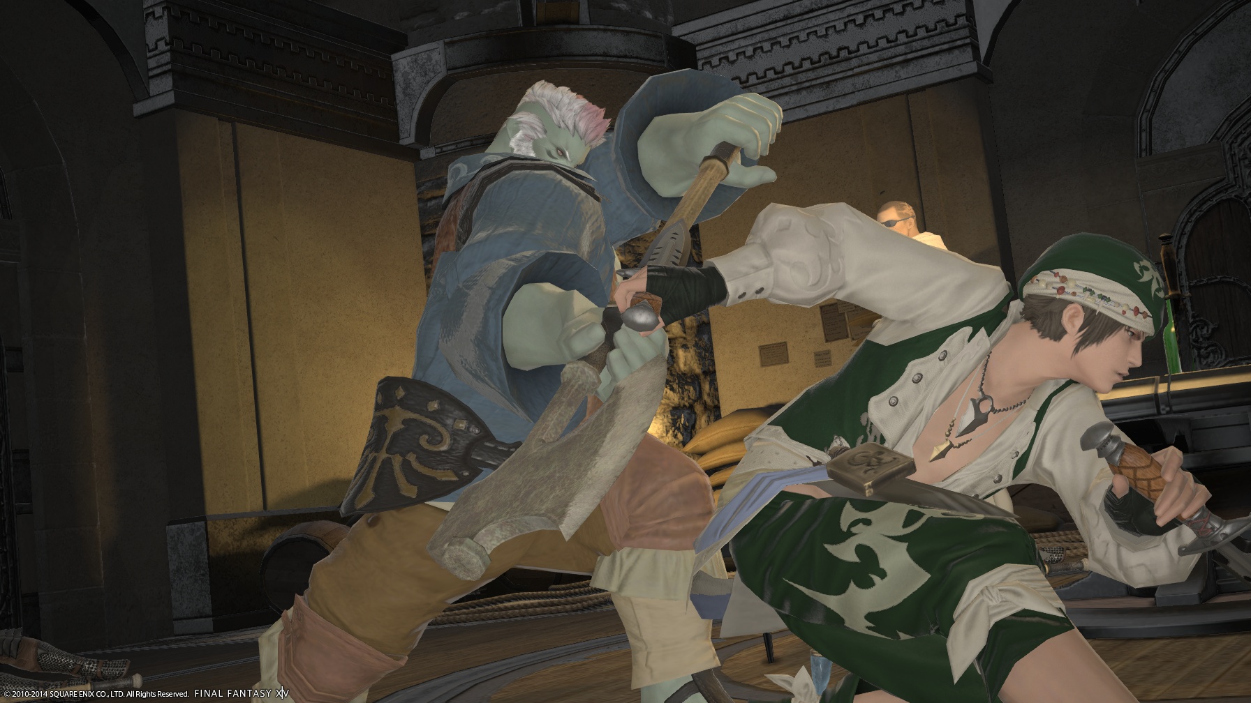 最初のSSの直前、ギルドマスター・ジャックとアイコンタクトを取っているところ。