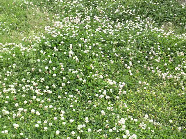 職場の敷地内に、白詰草が群生しております。