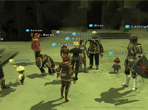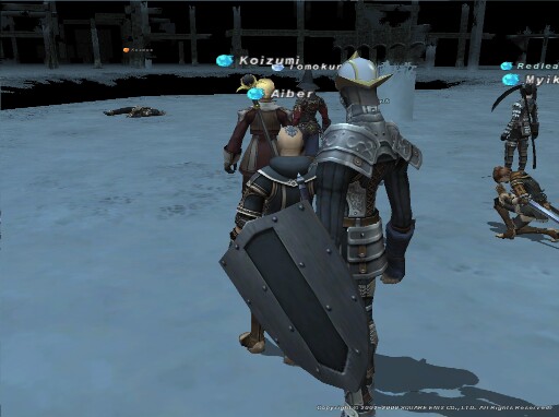 一身上の都合によりログインできなくなるトモクンが挨拶に来たので、皆で囲んでの記念撮影です。