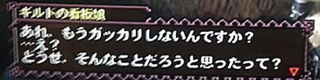 新しいモンスターの目撃情報があったときの、看板娘さんのセリフ。