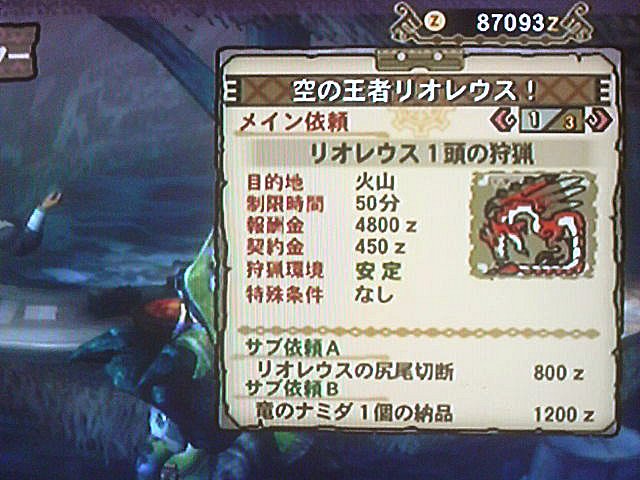 モンハン3で、初めての「3オチ」を経験してしまいました(´_`。)