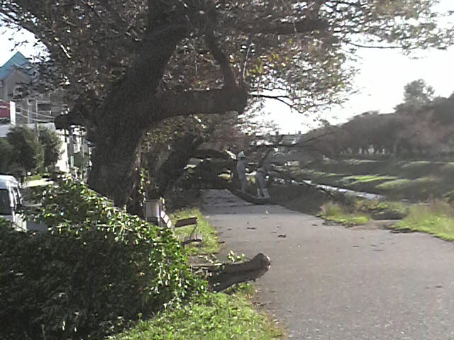 地元では有名な桜並木の何本かが倒れ、歩道を塞いでおりました。