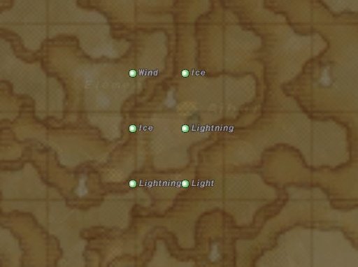 氷河にある6つのポイントを調べると精霊が現れて、その属性がマップにマーキングされます。