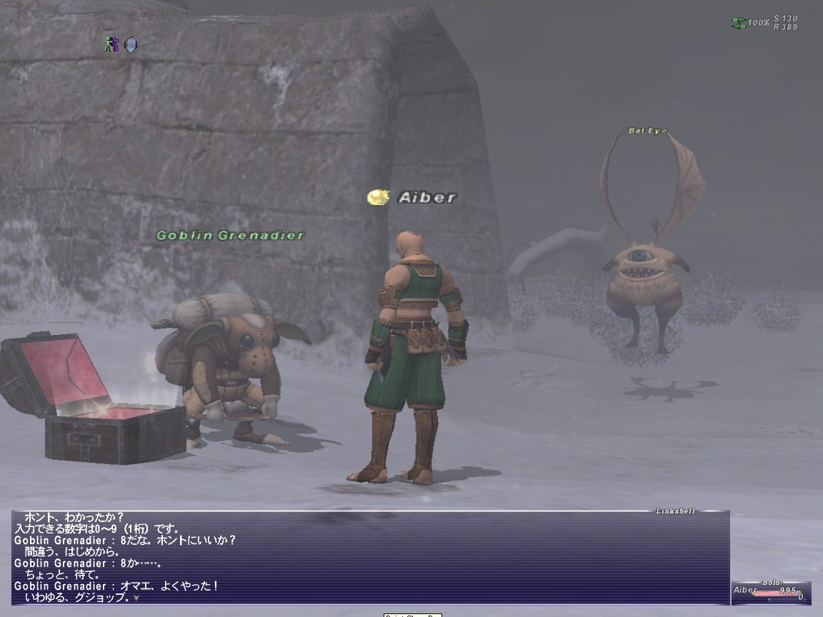 ゴブリンのところに戻って、数字を入力して正解だったら宝箱が開きます。