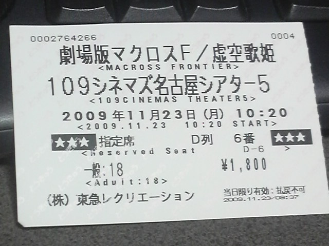 この日は、朝5時までトビに付き合ってて、2時間ほどの仮眠で出かけてきたのに、映画が始まると眠気なんて吹っ飛んでました。中盤のアルトがSMSに所属するくだりは、TV版を観てない人には解りづらい構成だったような気がしないでもないですが、劇場版から観た人でも十分楽しめる内容でしたね。