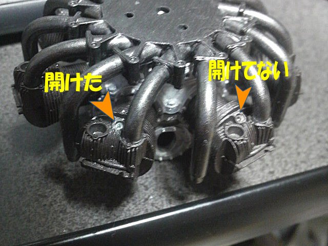 シリンダーヘッドにそれぞれ2つずつ、合計28個の穴を開けます。