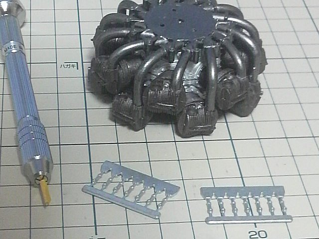 13号ではプラグが14本配布されましたが、コレで全部ではありません。栄一二型エンジンは、実はダブルスパーク…つまり1つのシリンダーヘッドに2本プラグが着くのです。従って、今回は上段7気筒分。