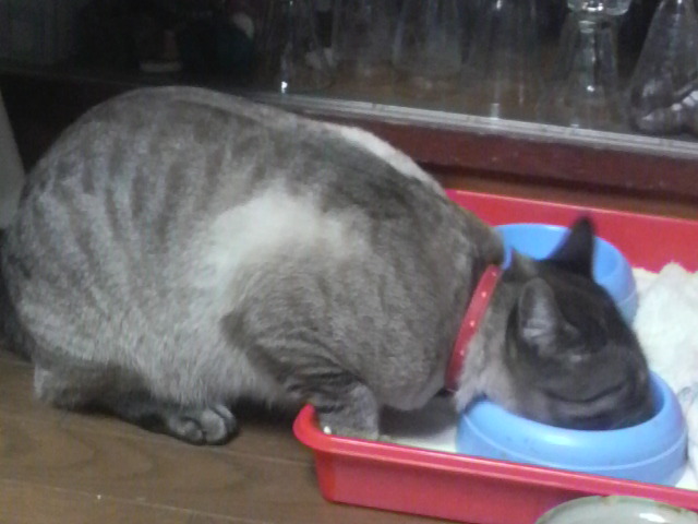 本日は、下の妹夫婦が一歳の甥っ子を連れて来てたので、その間ゲージに閉じ込められてたチャム。長い間、狭いところを強要されてたチャムは、妹夫婦が帰った後お刺身をもらって、ちょっと機嫌をなおしたようですw
