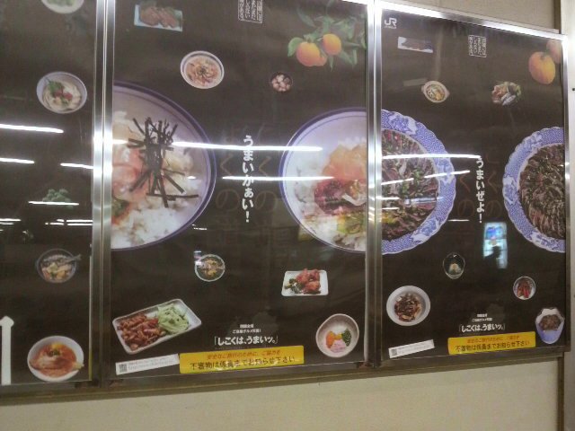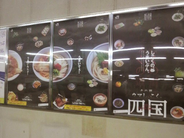 ちなみにポスターの真ん中に陣取ってる台詞は、各県の方言。「うまいぜよ!」(土佐弁)、「うまいかぁい!」(伊予弁)、「うまいでぇ!」(讃岐弁)、「うまいんじょ!」(阿波弁)。
