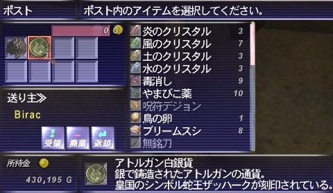 やまびこ薬とか毒消しとかエーテルとか…微妙なものも多かったですがw