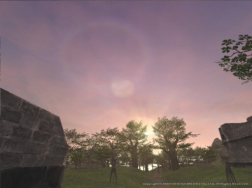 ゲルスバにでも向かうつもりだったのか、北サンドリアから出たところで夕日が正面に…。