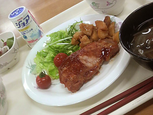 最後の夕飯は、ポークチャップ。